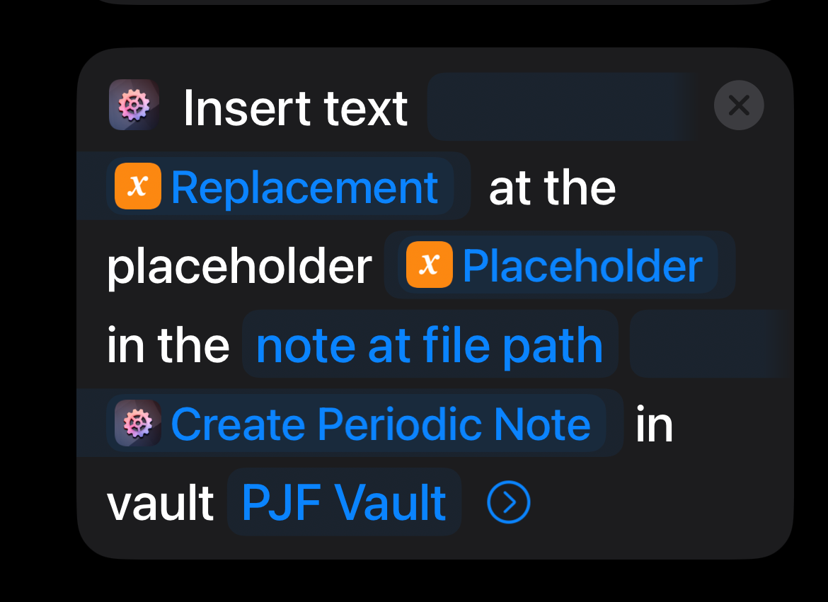 For reasons I can not yet pin down, the Note reference (in your case the “Create Periodic Note” ref) is not automatically using the note’s file path as before, or the new version of Shortcuts isn’t automatically extracting it anymore, I can’t tell. Either way: