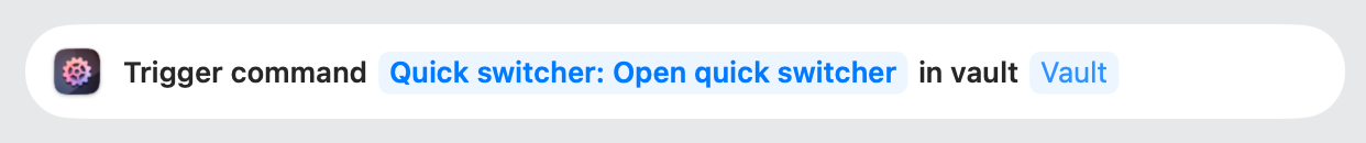 Can someone explain to me (1) if AFO does have the ability for me to open up Obsidian’s Quick Switcher function and (2) assuming it is via the Trigger Command action is the way to go, how does it work?