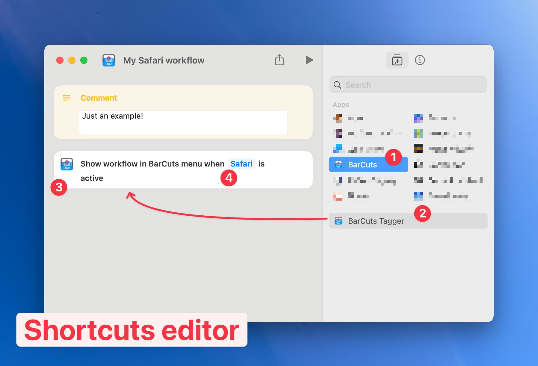 Hereâs an example where I tag the shortcut âMy Safari workflowâ as belonging to Safari.