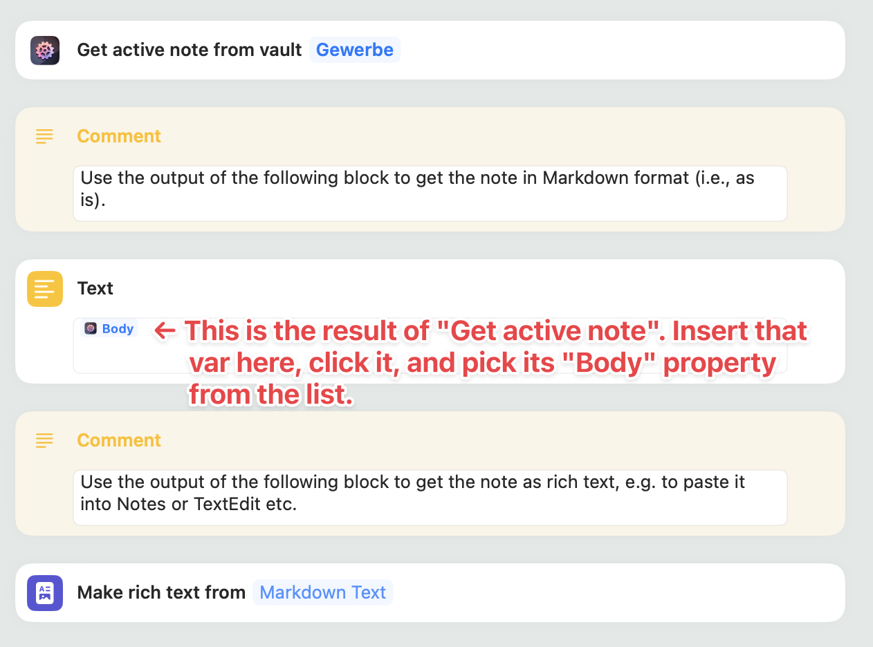 Is there an Actions for Obsidian action that enables me to copy text from an Obsidian note? I want to create a shortcut to copy the text in an obsidian note and paste it into another application on my Mac.