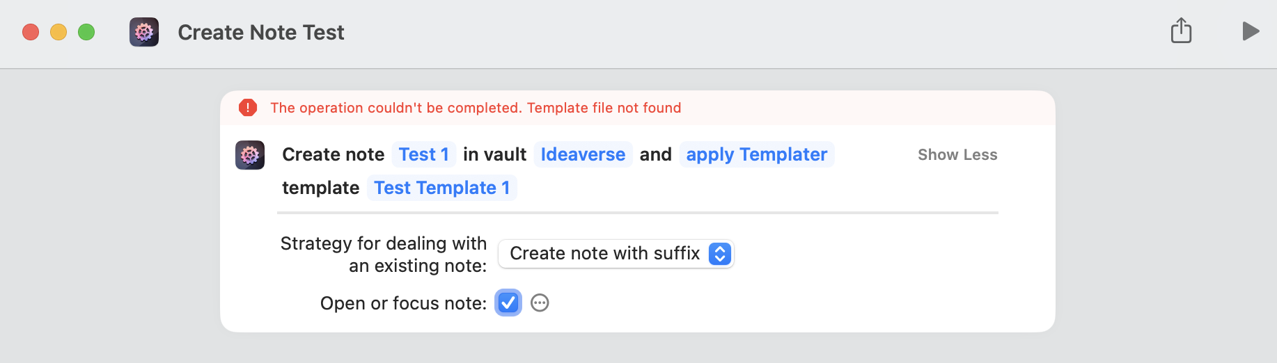 I probably need to define these template paths externally in Data Jar and migrate them over to using the appropriate variable when creating notes with templates. Of course, it’s not easy to go through all my shortcuts to identify where I used Create Note so I can make these changes. Or I can just find them when they cause exceptions and fix them one at a time.