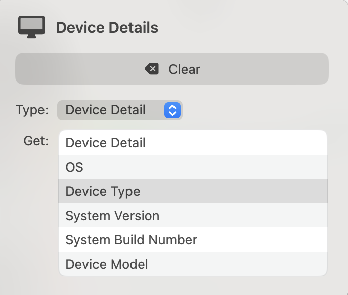 Check the Device Type of Device Details to check for Mac, iPhone, iPad, or Watch. You can do this right in the If parameter, but if you prefer it’s also possible to use Get Device Details action and Set Variable if you might need to check it in several places.