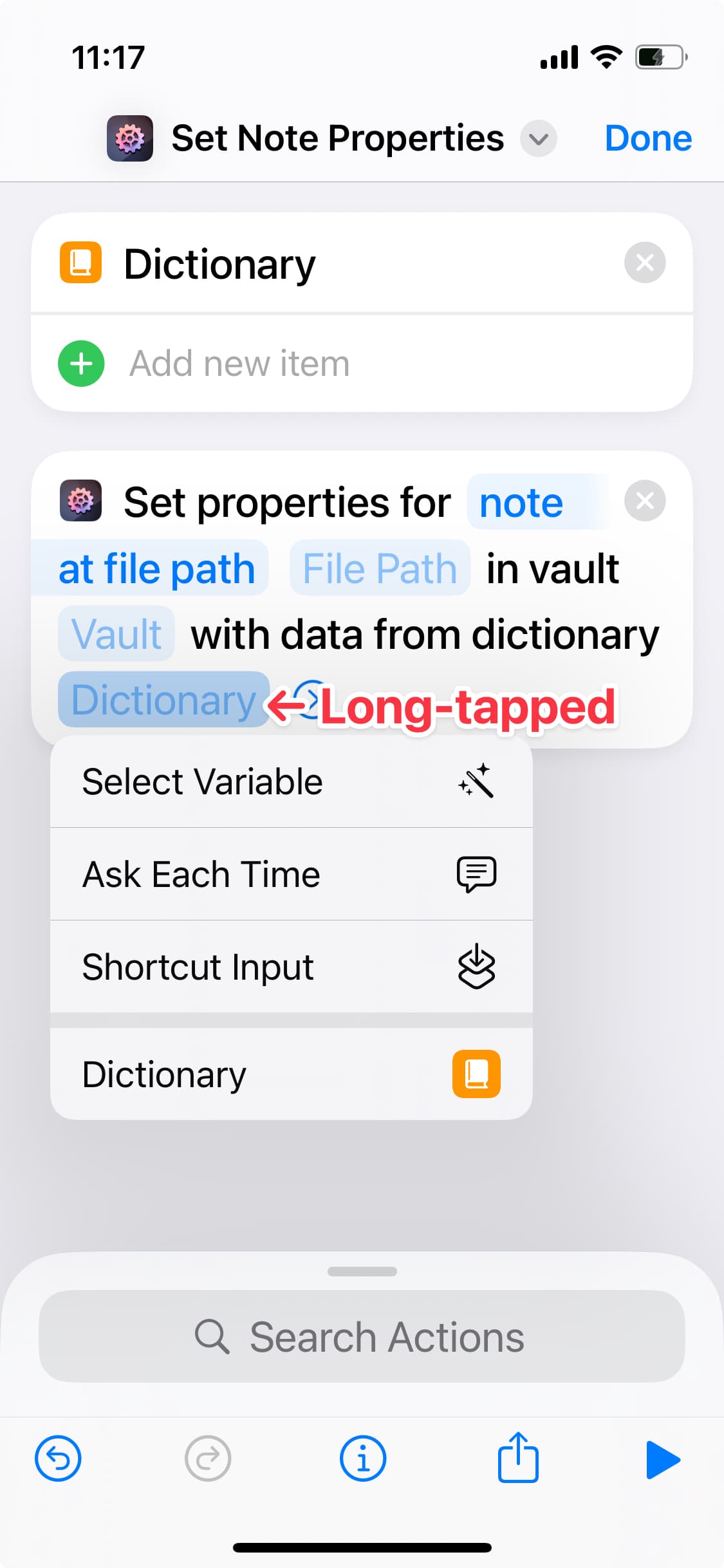 Also (important!): The more rounded the in-action docs are, the higher the likely success rate down the line when we can use Apple Intelligence to have it build Shortcuts workflows for us.