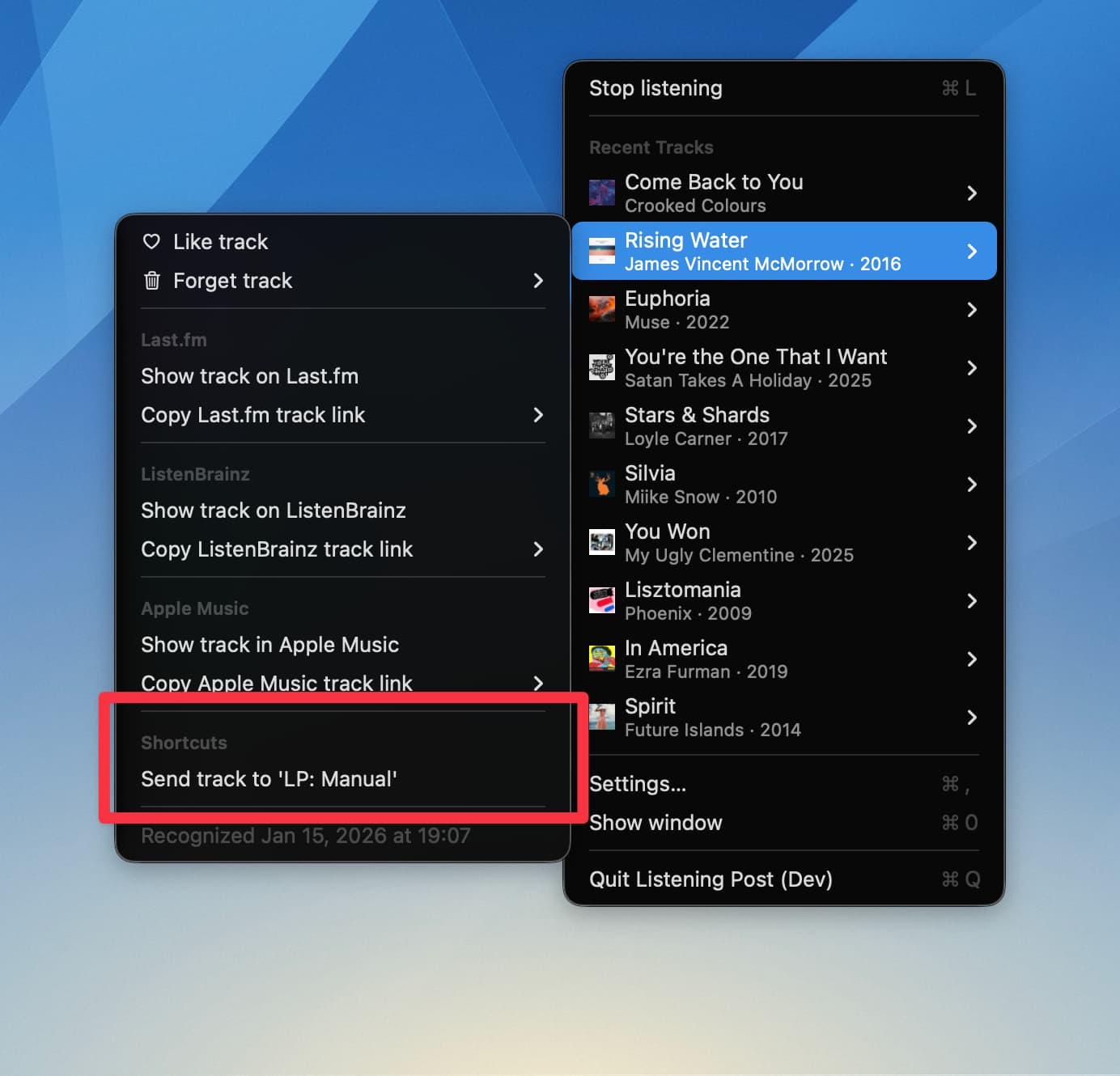 This becomes possible once the track is fully recognized and enriched. The enrichment usually takes just a few seconds, and mostly depends on the channels you’ve enabled (Last.fm, ListenBrainz etc.).