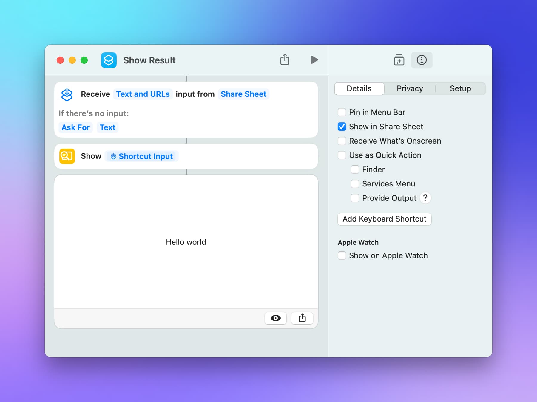 Thanks for your feedback, really appreciate it. I’ve played around with the shortcut some more and restricted the input to text only, but I still can’t get the share button to do anything. If there is no input the shortcut prompts me for some input and it works fine: https://share.cleanshot.com/Q4yDBj6P2HRCnFCr7y2C.