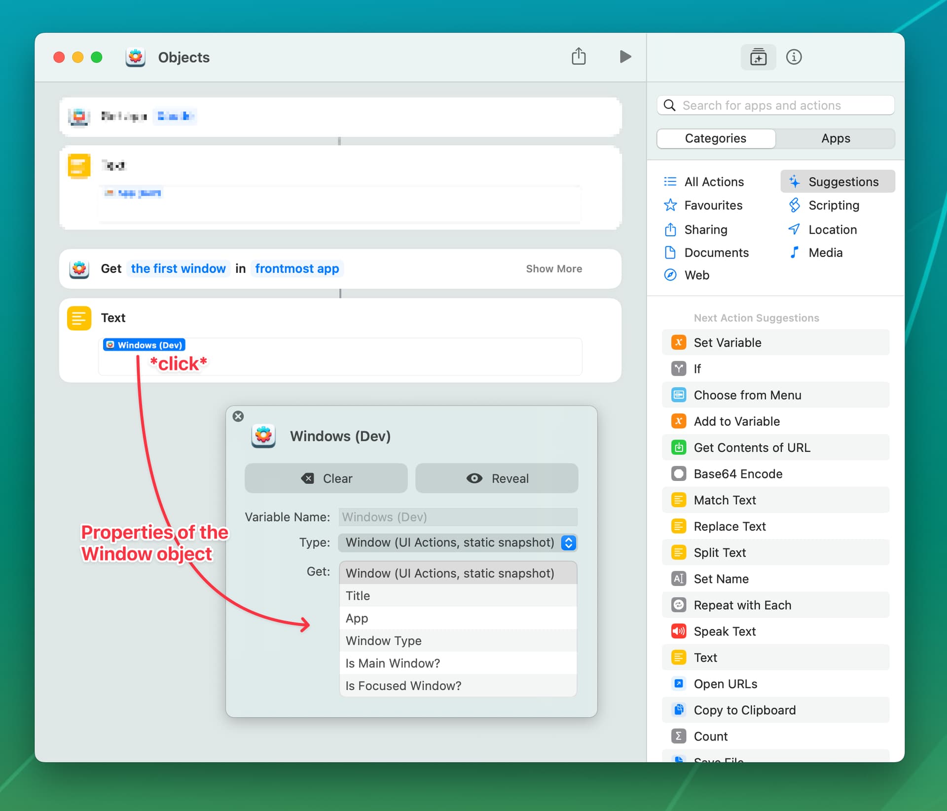 - Lookups (▲ Get Windows, ▲ Get App, etc.) will only return one/many objects, but they’ll never do anything with them.