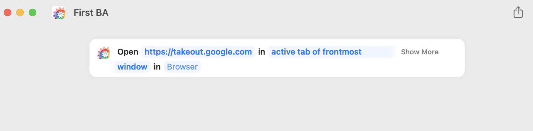 I ran my first shortcut which was suppose to open a URL “https://takeout.google.com” in Open in tab action in Safari.
