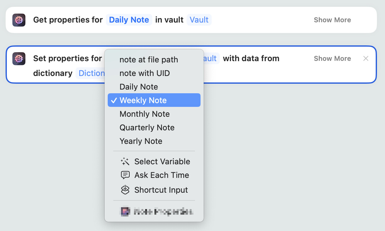 The existing properties-related actions, such as Get Note Properties, now also support Periodic Notes. Additionally, you can now decide whether to bring the queried note to the front.