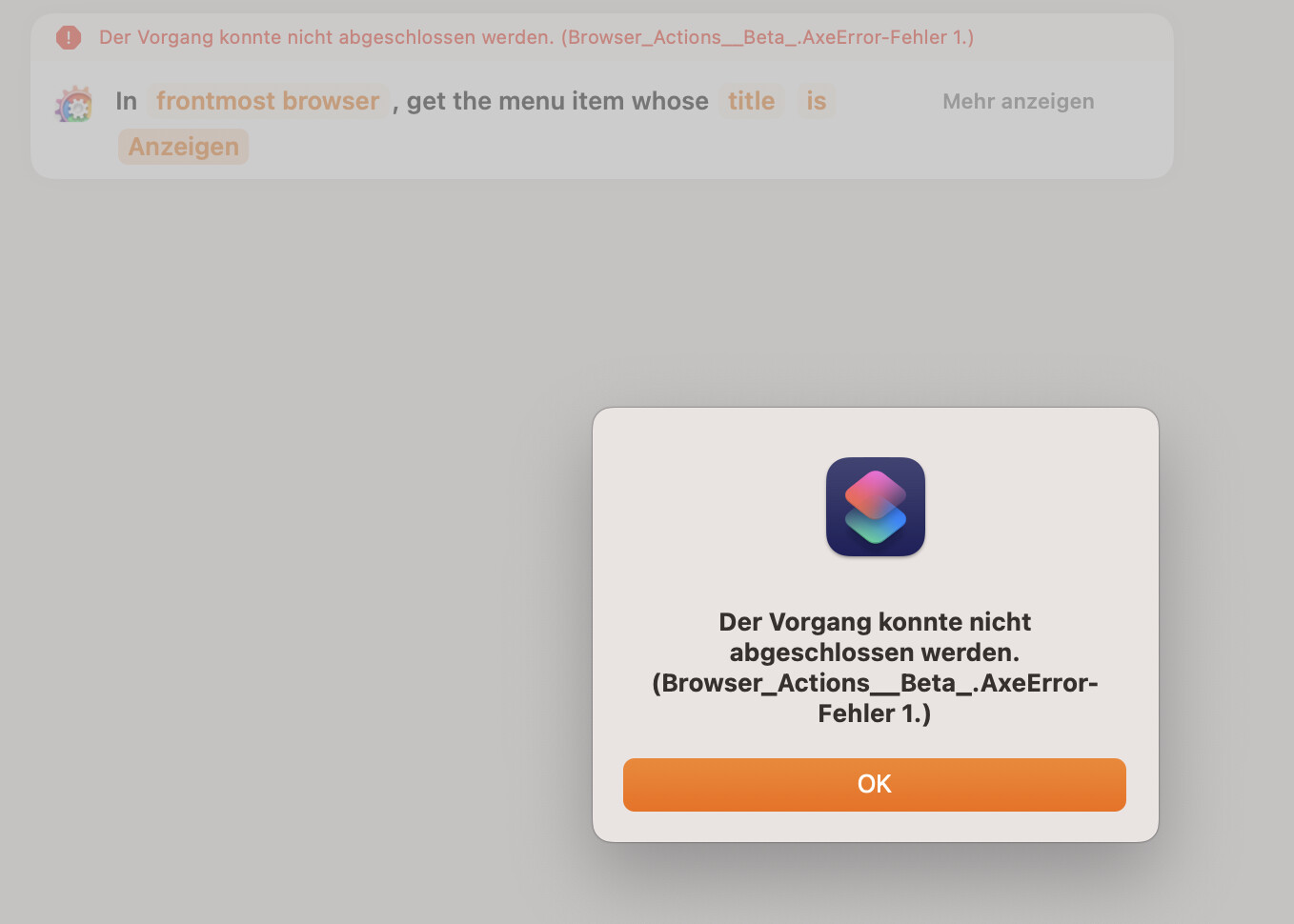 Fine! I rebuild some of my other old examples, which are mainly reading stuff like the URL, or the content of a browser like the HTML or the text. These shortcut are wiring on all tested browser: Chrome, Vivaldi and on Safari as well!
