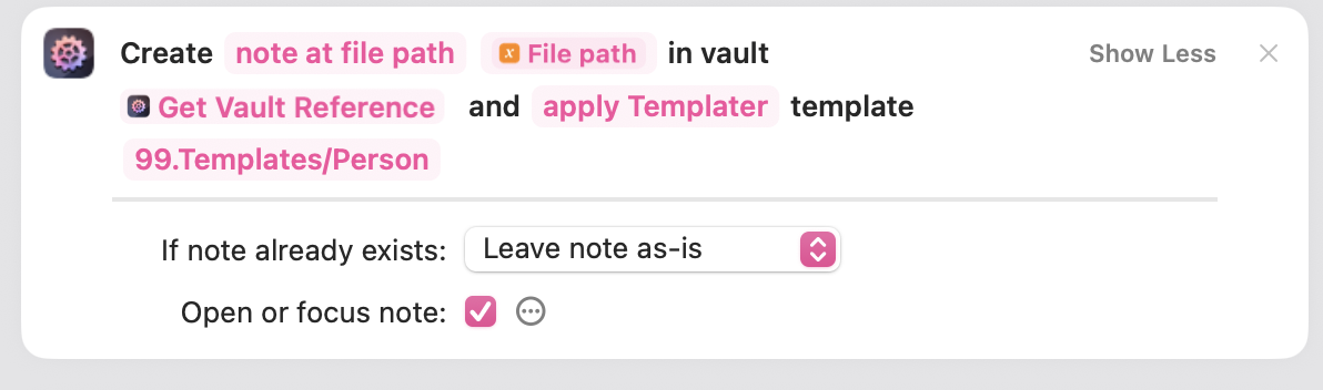 I adapted the template from Obsidian People: Obsidian, Shortcuts, Apple Contacts, the biggest difference was adding a property RelationshipMarker to make it easier to correlate.