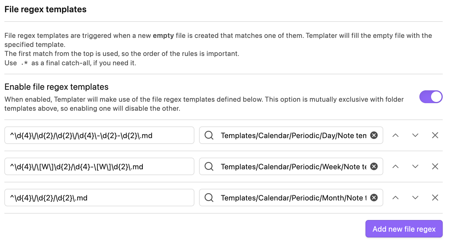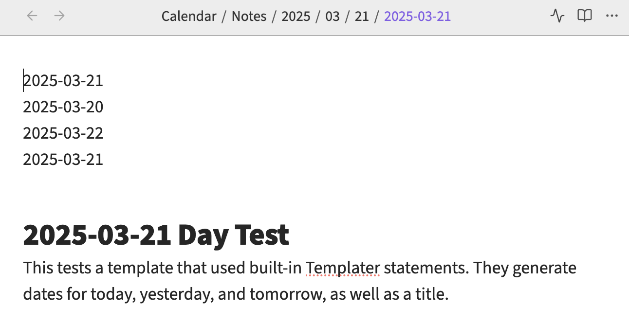 I can’t use Folder Templates because I have a nested date subfolders under Calendar/Notes, such as 2025/03/26 (day), 2025/03/W13 (week), 2025/03 (month), 2025/Q1 (quarter), and 2025 (year). There isn’t a specific folder aligned with its associated template so I can’t define them in my situation.