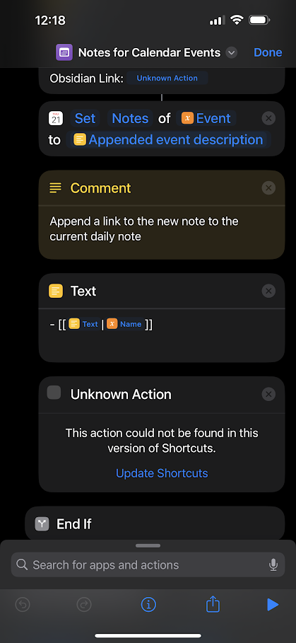 I am having trouble getting Actions for Obsidian to show in shortcuts. I just installed the app